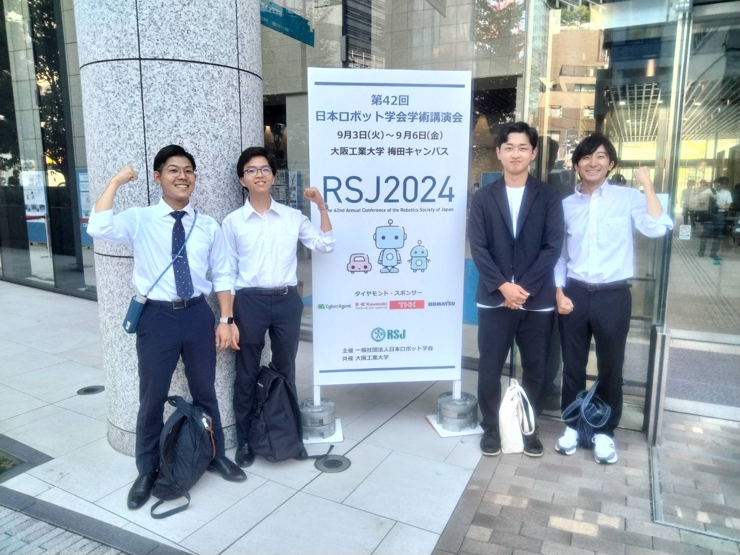 日本ロボット学会学術講演会にて,M2の津久井君,峯岸君,春原君,B4の石丸君が発表しました!